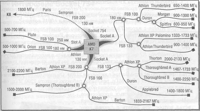 В 2000 г. на рынке появились дешевые варианты Athlon, выполнен-